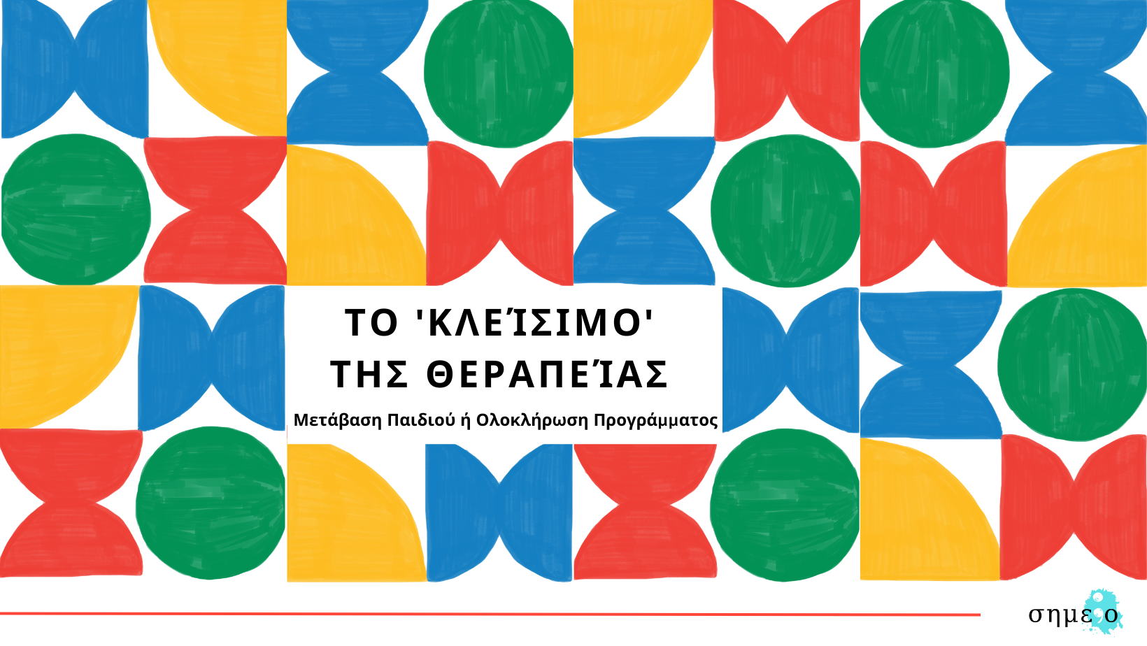 Το κλείσιμο των θεραπευτικών συναντήσεων αποτελεί μία κρίσιμη φάση της θεραπευτικής διαδικασίας, καθώς σηματοδοτεί είτε την ολοκλήρωση ενός θεραπευτικού προγράμματος και την επίτευξη των στόχων που είχαν τεθεί, είτε τη μετάβαση του παιδιού σε ένα νέο θεραπευτικό ή εκπαιδευτικό πλαίσιο. Η μετάβαση αυτή μπορεί να προκύπτει για διαφορετικούς λόγους, όπως η αλλαγή θεραπευτή/τριας, θεραπευτικού πλαισίου ή αναγκών του παιδιού και της οικογένειας. Η ομαλή ολοκλήρωση ή μετάβαση, λοιπόν, δεν αποτελεί μία μεμονωμένη συνεδρία «τέλους», αλλά μία διαδικασία που εκτείνεται στον χρόνο και απαιτεί σχολαστικό σχεδιασμό και συνεργασία όλων των εμπλεκόμενων μελών. Στη διαδικασία αυτή περιλαμβάνεται το παιδί, η οικογένεια, αλλά και η θεραπευτική και εκπαιδευτική ομάδα, ώστε να διασφαλιστεί η συνέχεια της υποστήριξης και η διατήρηση των βασικών στοιχείων του θεραπευτικού πλάνου.